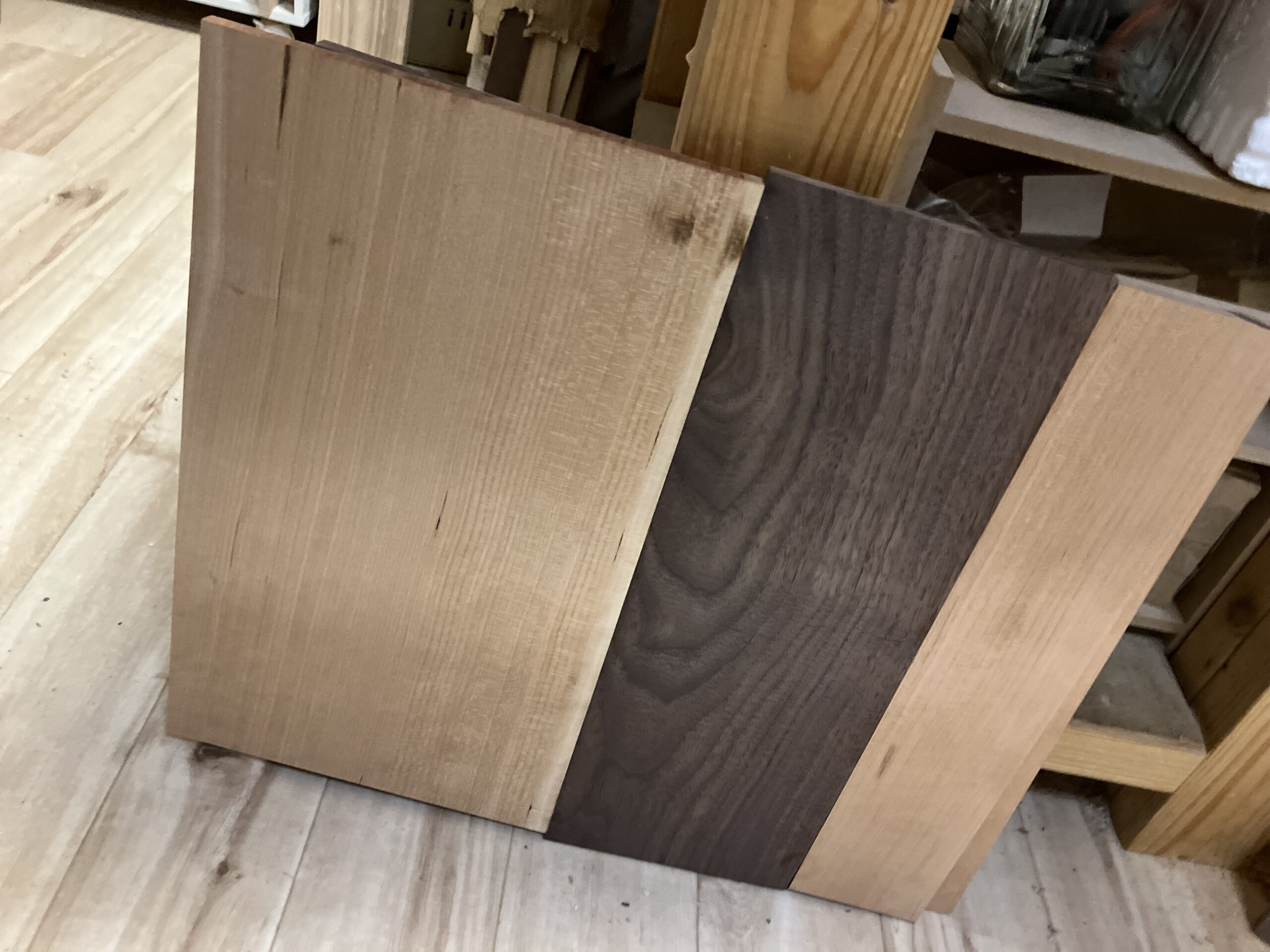 当初のロゴイメージをベースに、フレーム形状やデザインを変えた数案をご提示。 対話を重ねる中で、「ローマ字を入れたい」「ロゴの背景を透明なアクリルにできないか」といったお客様の新たな要望が生まれました。 それらを一つひとつ、どのように「木」と「異素材」で具現化するか。ここからが設計士としての腕の見せ所です。